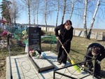 Наведение порядка на месте захоронения погибших мирных жителей деревни Гноев, могиле С.М.Дедова.